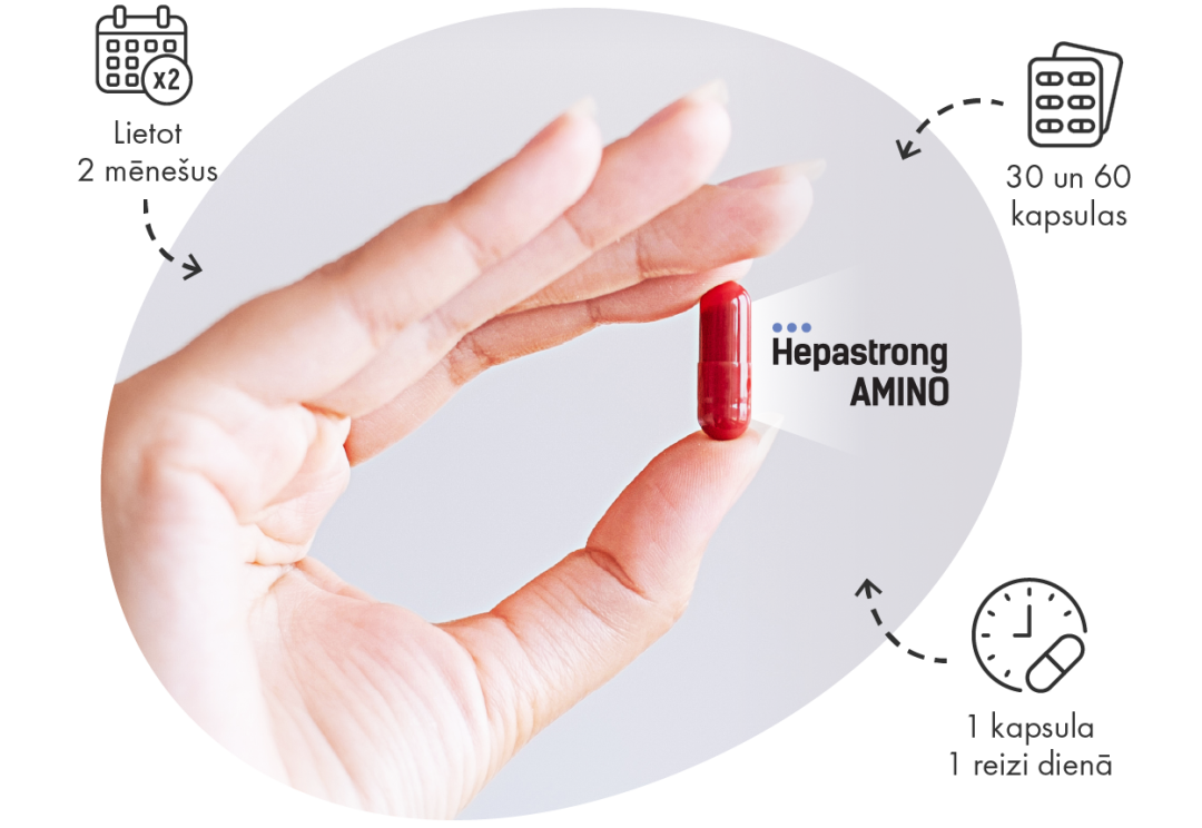 Lai panāktu maksimālo efektu, Hepastrong Amino rekomendē lietot kursa veidā 2 mēnešus